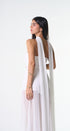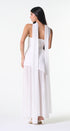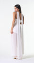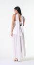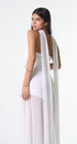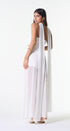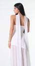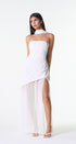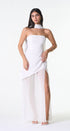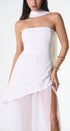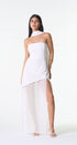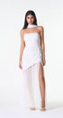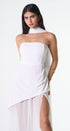 Maxi, DRESS, strapless, Tela de poliéster, color blanco, con bufanda larga en el cuello, Tela de mesh en la parte de abajo de la falda, con abertura en la pierna, ideal para una ocasión muy especial