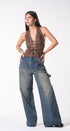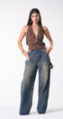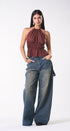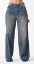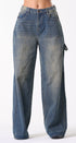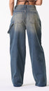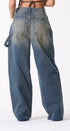 Jeans de mezclilla, azul Vintage, corte a las caderas, pierna ancha, estilo Cargo, la tela no estira, Ideal para un Look moderno y casual
