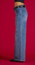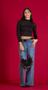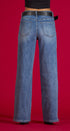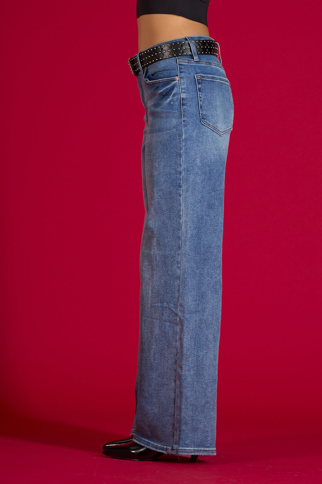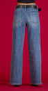 Jeans de mezclilla, color, azul oscuro, talle, alto, pierna, ancha, ideal para un Look moderno y casual