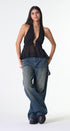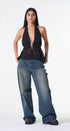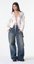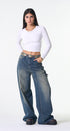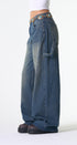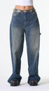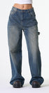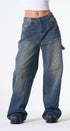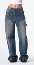 JEANS, de mezclilla, cargo,color azul, pre lavado Vintage, Corte recto y ancho de pierna, ideal para un Look moderno y casual