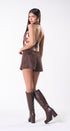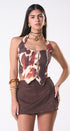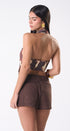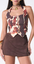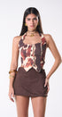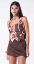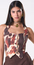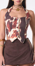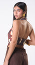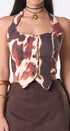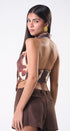 Top color, café con blanco, espalda, abierta, botones al frente, corte, la cintura, tela de algodón, ideal para un Look moderno y casual