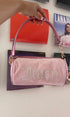 BOLSO JUICY COUTURE ROSADO PASTEL CON TIRA ROSADA METALICA ESTILO BARRIL