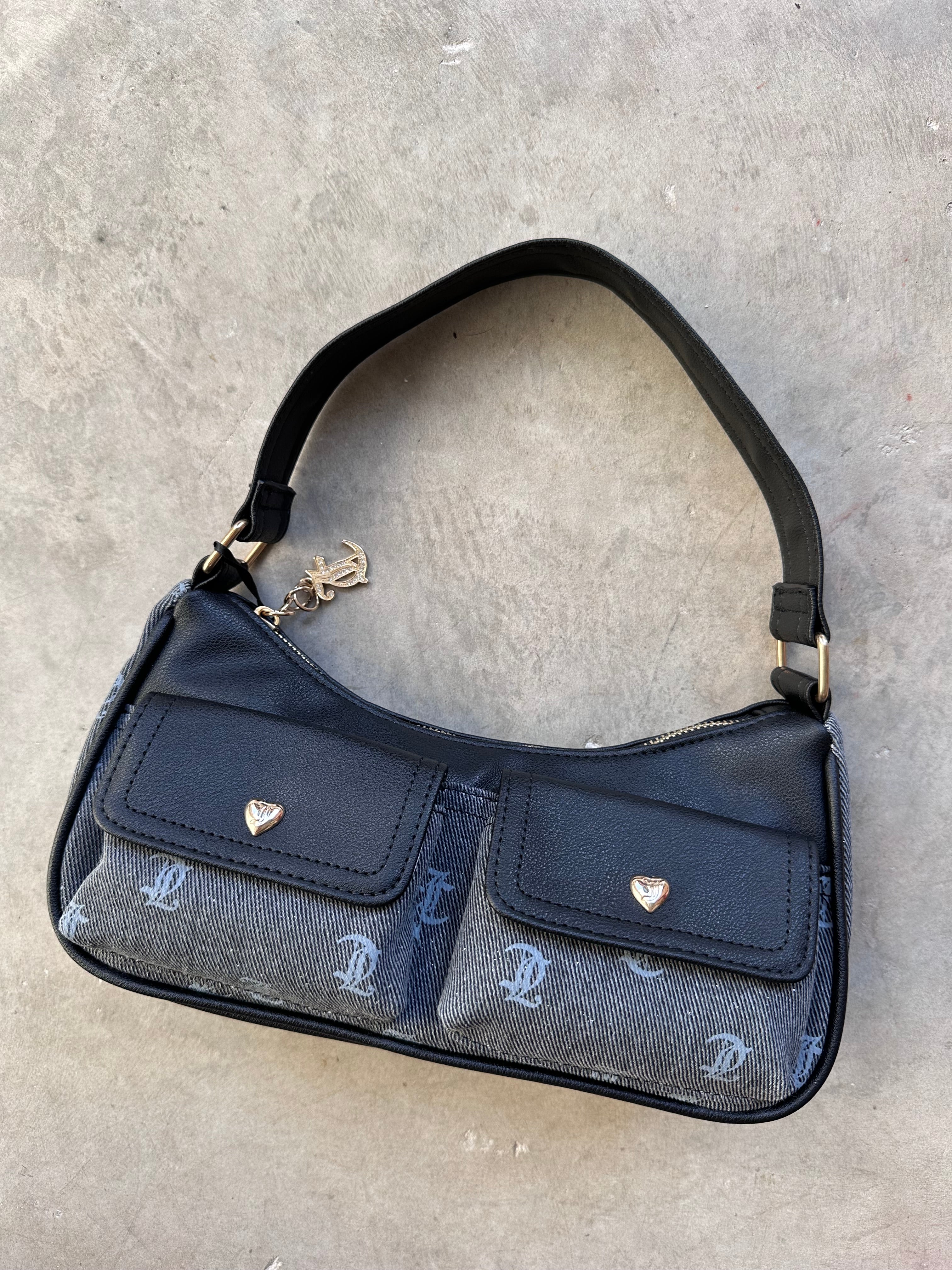 Denim fever al estilo Juicy! Consigue el look street style definitivo con este bolso baguette original. La combinación de mezclilla con monograma "JC" y detalles en piel negra lo convierte en el accesorio más trendy y funcional de tu armario.