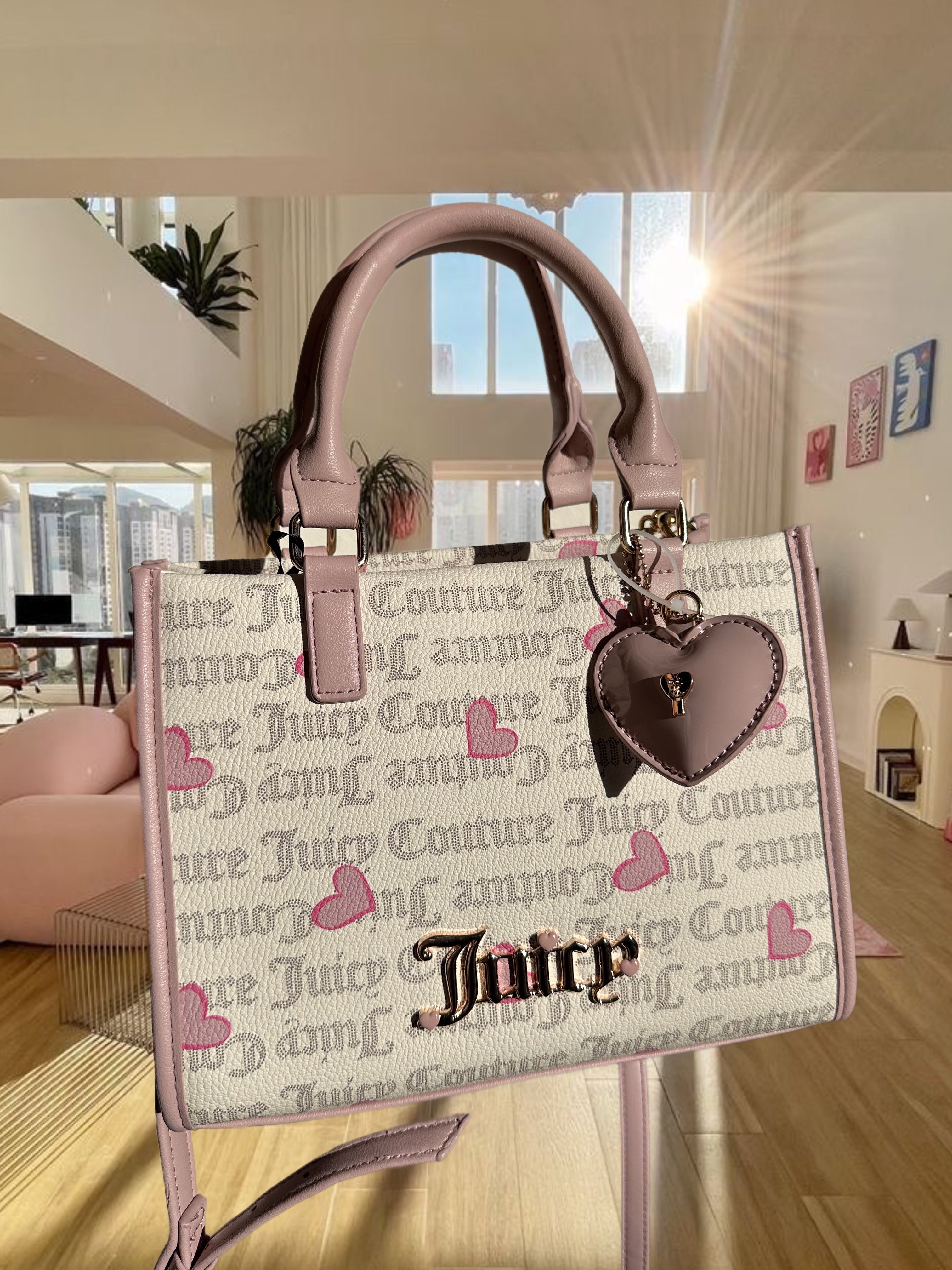 ¡Enamórate de tu próximo accesorio favorito! Lleva el glamour icónico de Los Ángeles a todas partes con este espectacular bolso mini tote de Juicy Couture. Diseñado para la mujer que no teme destacar, este bolso combina la elegancia del monograma clásico con un toque dulce y romántico de corazones rosas. Es la mezcla perfecta entre nostalgia de los 2000 y sofisticación moderna.