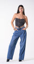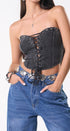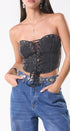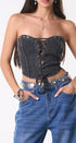 Corset color negro, Vintage, Con agujetas al frente y amarre tipo corset al frente corte a la cintura, ideal para un Look moderno y casual