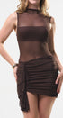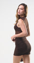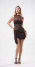 Mini DRESS, color, café, tela de poliéster mesh con forro en la parte de abajo y corrugado en la parte de abajo, forro en la parte del busto, ideal para un Look moderno y casual