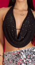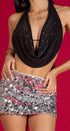 Brad Top con amarre en el cuello, amarre en espalda, cuello de Hamaca,con brillos al frente , Ideal para un Look moderno y casual