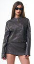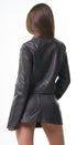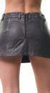 Minifalda de cuero, color, café, oscuro, con zipper en la parte de atrás, ideal para un Look rockero, moderno y casual.