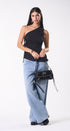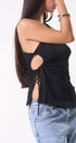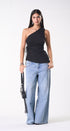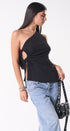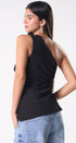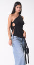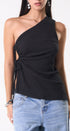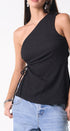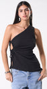 Top, color negro, One, Shoulder, tela de poliéster, con detalle de círculo a un lado, asimétrico, ideal para un Look moderno y casual