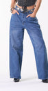 JEANS, de mezclilla, color azul, corte a las caderas, ancho de piernas, ideal para un Look moderno y casual