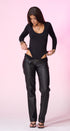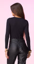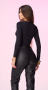 Body Suit, color negro, manga, larga cuello en V , Broches en la parte de abajo, ideal para un Look moderno y casual.