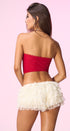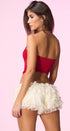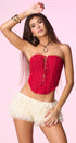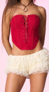 Corset color rojo, con lace up Al frente, con encaje en la parte de arriba, con varillas para un mejor ajuste, ideal para un Look moderno y casual.