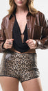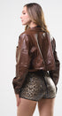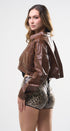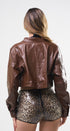 Jacket, color, café de cuero, sintético, corte a la cinturas, con Bolsas al frente, broches al frente, ideal para los días de frío y tener un Look moderno y casual