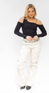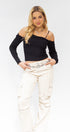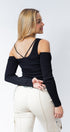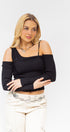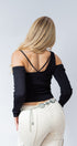 Top color negro de manga larga con tirantes, tela de knit , corte a las caderas, ideal para un Look moderno y casual
