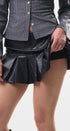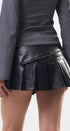 Minifalda de cuero, sintético, color negro, de paletones, con detalles de zipper de decoración en todo el borde, con cintura doblada, ideal para un Look moderno y casual