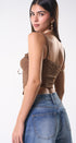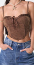 Corset color café, con tela de encaje, sierra de zipper, Tiritas, ajustables para un taller Perfecto, ideal para un Look moderno y casual
