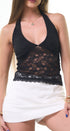Top de encaje, color negro, con forro en la parte de arriba para mejor comodidad, cuello en Uber, corte, las caderas, de tirantes gruesos, espalda, abierta, tela de encaje, ideal para un Look moderno y casual.