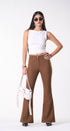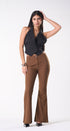 Pantalón, color, café, acampanado, talle, alto, tela de poliéster y algodón, ideal para un Look moderno y casual