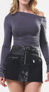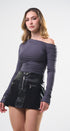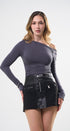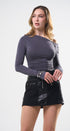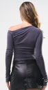 Top, color gris, corte, las caderas, corrugado a los lados, manga, larga, cuello, asimétrico, ideal para un Look moderno y casual