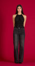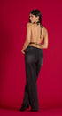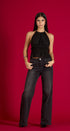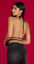 Top, color negro, Halter, amarren el cuello, corta las caderas, elástico en la cintura, ideal para un Look moderno y casual