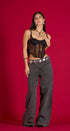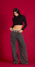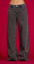 Jeans, negro, Vintage, con remaches a los lados y alrededor de las bolsas en la parte de atrás, corte a las caderas, pierna, ancha, ideal para un Look moderno y casual