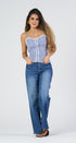 Pantalón de mezclilla color azul , Corte alto, pierna recta, ideal para un Look moderno y casual