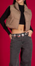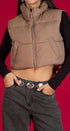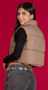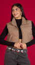 Chaleco color Moca, impermeable con cera al frente corte la cintura, ideal para los días de frío