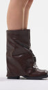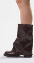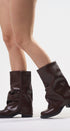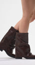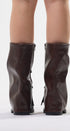 Botas de cuero, color, café, oscuro, punta cuadrada, tacón cuadrado