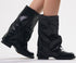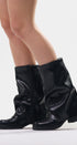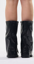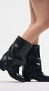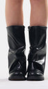 Botas bajas de cuero, color negro, punta cuadrada, tacón cuadrado