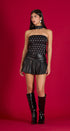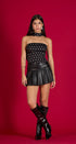 Top Of Shoulder, negro, con puntos blancos, polkadots, con bufanda, incluida, corte la cintura, tela de satín, ideal para un Look moderno y casual