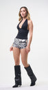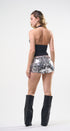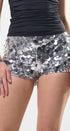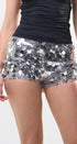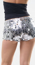 Mini Short, con lentejuelas, color plateado, con cierre de zipper en la parte de atrás, con forro en la parte de adentro, ideal para una ocasión especial