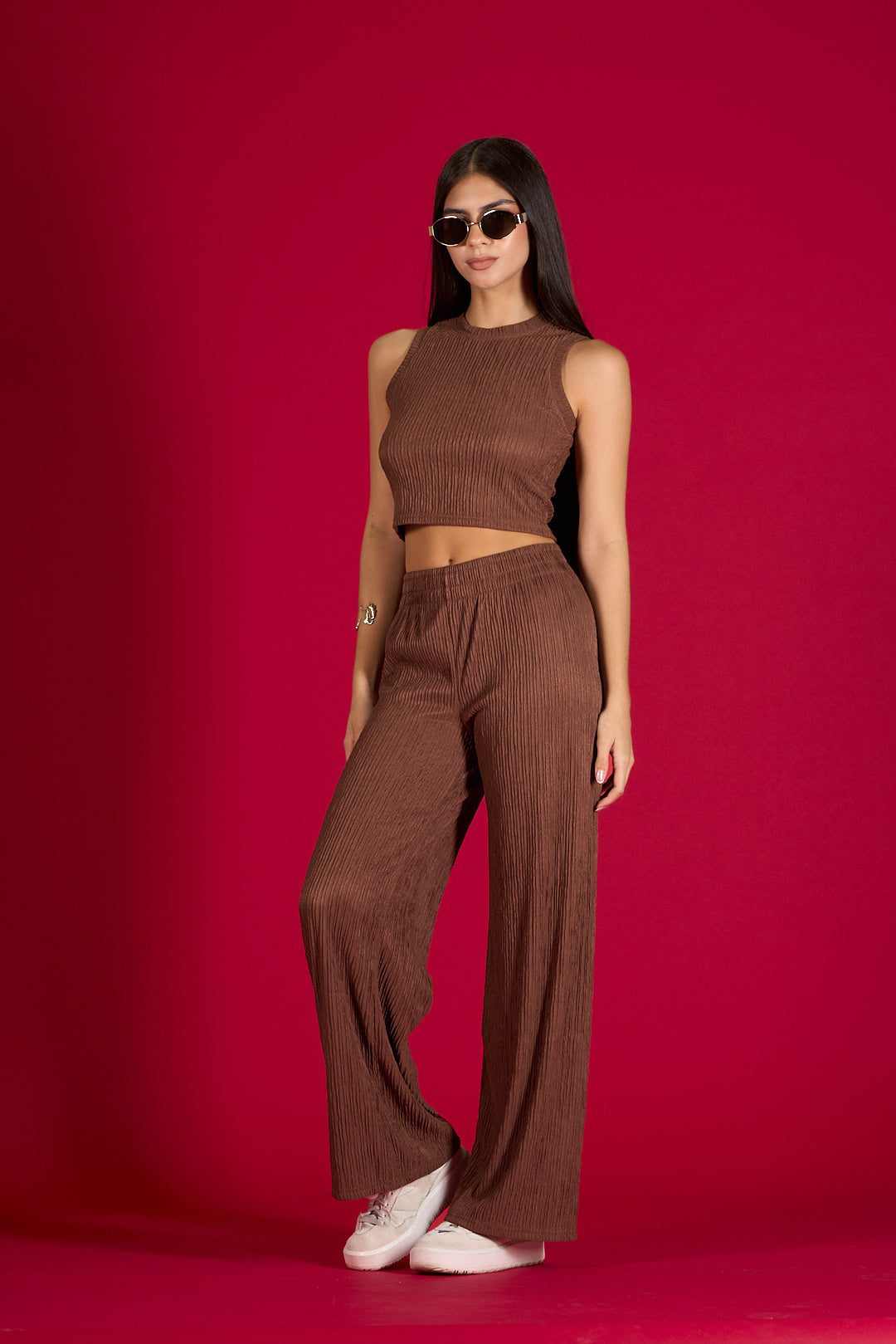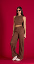 Se pantalón y todo, pantalón con elástico con la cintura, pierna, ancha, corte, la cintura, cuello, altos, sin mangas, de la de poliéster, estrés, ideal para un Look relajado
