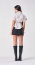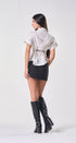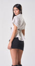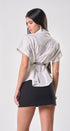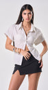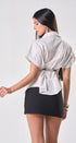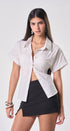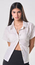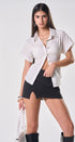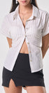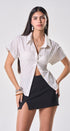 Top corte camisero con cuello mangas cortas, con rayitas, tela de algodón, botones al frente, no incluye el cierre metálico de la espalda, corte, las caderas, ideal para un Look moderno y casual