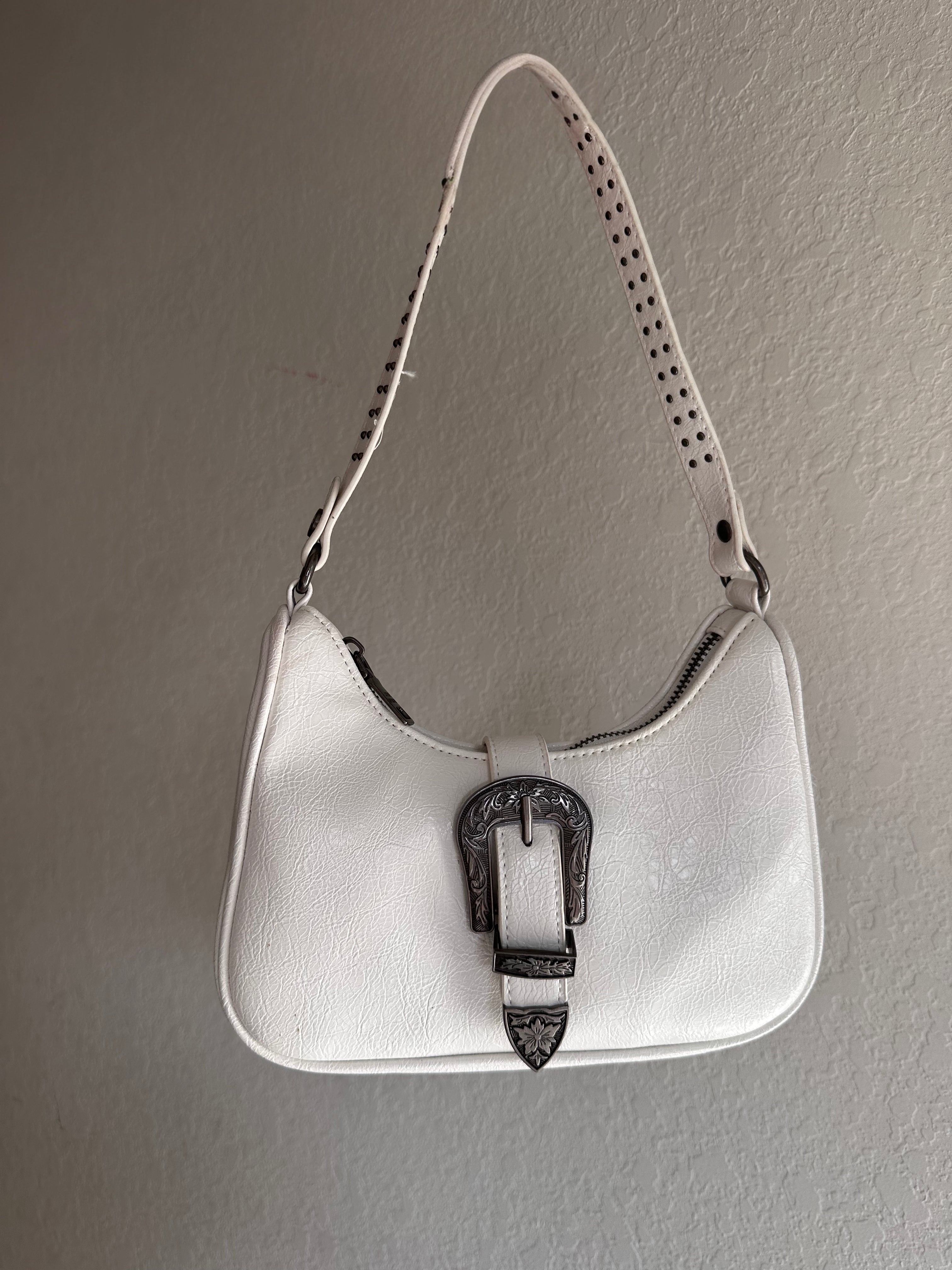 Bolso marca Steve Madden blanco con hebilla plateada. Estilo shoulder bag. 100% original.