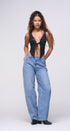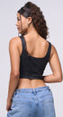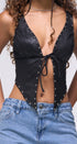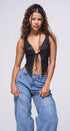 Top color negro con remaches plateado , amarre al frente ideal para un look moderno y casual