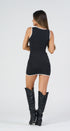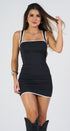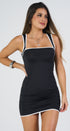 Mini DRESScolor negro con detalles en blanco en el cuello y en la manga, tela de poliéster, Stretch, ideal para una ocasión especial
