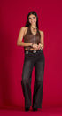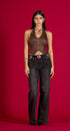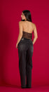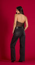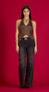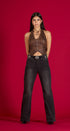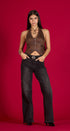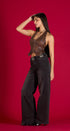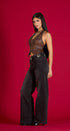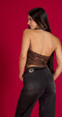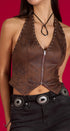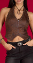 Corset color café, con cierre al frente y remaches al frente, amarre el cuello, corte la cintura, ideal para un loco moderno y casual
