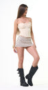 Top corset, color amarillo, claro, es Trap, guardia, las caderas, con varillas para un mejor ajuste, lace up en la parte de atrás, ideal para un Look moderno y casual.