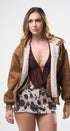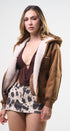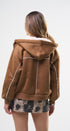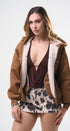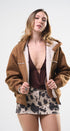 Jacket Over size de cuero, sintético, con forro de algodón por dentro, color, café, forro, beige, corte a las caderas, ideal para los días de