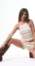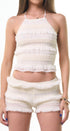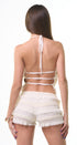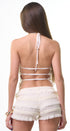 Top color, beige, Halter, amarre en el cuello, espalda, abierta, tela poliéster, corrugada, corte a las caderas, ideal para un Look moderno y casual.
