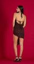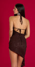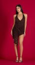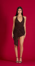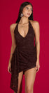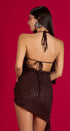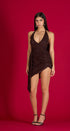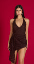 Mini DRESS, color, café, con escarcha, asimétrico en la parte de abajo, amarren el cuello, espalda, totalmente abierta, cintura, abierta, ideal para una vocación especial
